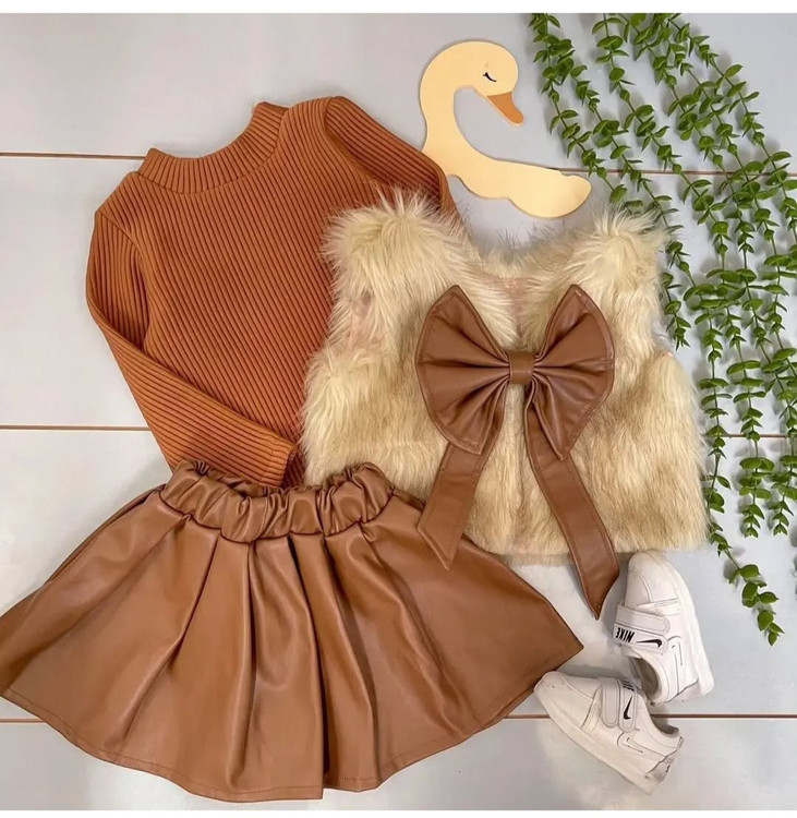 /جلیقه خز وارداتی /و بلوز پنبه فانریپ /و دامن چرم /و پاپیون گل سینه چرم مناسب ۱تا ۸