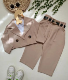 کت /شلوار/تاپ/ کمر بند/جنس کت وشلوارسوپر مازراتی جنس تاپ فانریپ مناسب ۲ تا ۸ و ۹ سال