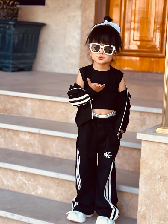 ۱سال👈قد سویشرت👈۳۴ قد کراپ👈۲۳ پهنای سویشرت👈۳۳ قد آستین👈۲۵ قد شلوار👈۵۱