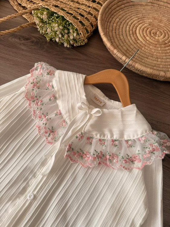 سایز ۴ 👈 قدشومیز ۴۲ – پهنا ۳۳ – آستین ۳۶ – قد دامن ۳۰