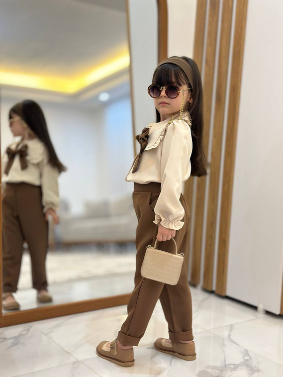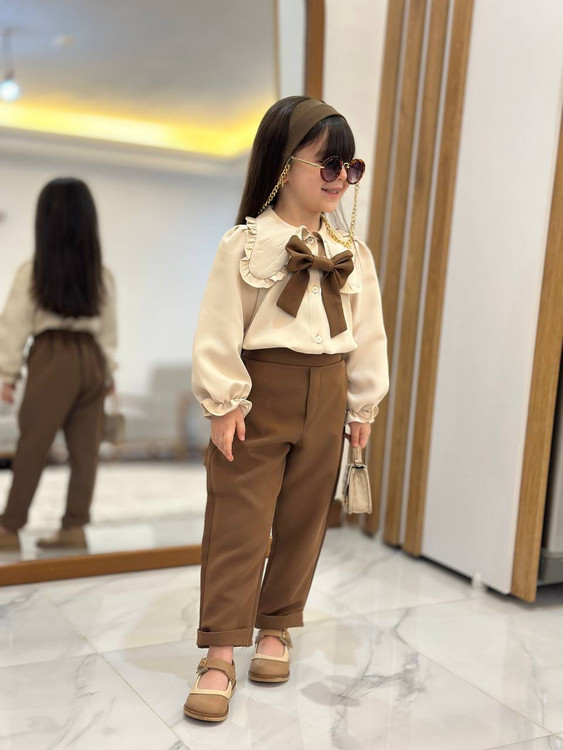 ستِ خاص برای دختر کوچولوهایی که همیشه باید بدرخشن ✨ترکیبِ شیکِ کرم و قهوهای، پاپیونِ جذاب و وقاری که توی هر فریمی دیده میشه 😍