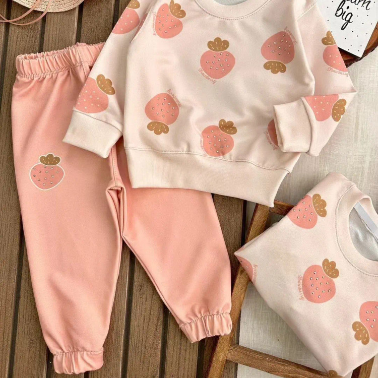 بلوز شلوار توت فرنگی نگین دار😍